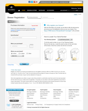 During a major redesign of the Keuirg website, Registration became a priority to the customer experience. This is one of many pages designed to usher customers through a three step process.